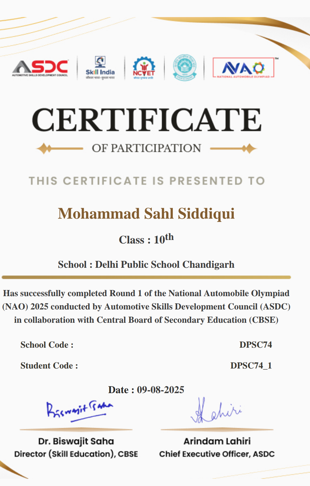 The National Automobile Olympiad (NAO) is a flagship initiative by the Automotive Skills Development Council (ASDC) in collaboration with Central Board of Secondary Education (CBSE), aimed at fostering early engagement with school students from Class 6 to 12 and cultivating their interest in the dynamic world of mobility and automotive technology. This Olympiad serves as a platform to not only spark curiosity but also to educate and inspire young minds about the vast opportunities within the automobile industry.
